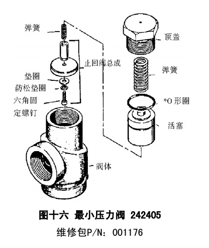 最小壓力閥的結(jié)構(gòu)參看下圖,一般只需更換 O 形密封圈。 保養(yǎng)工作按以下步驟進(jìn)行。